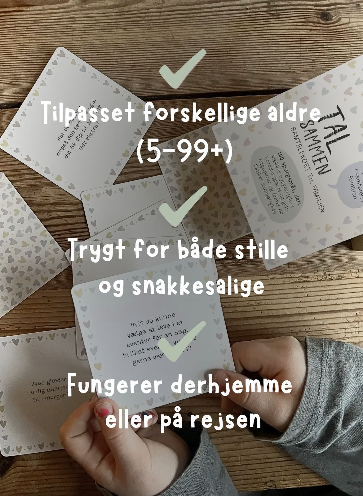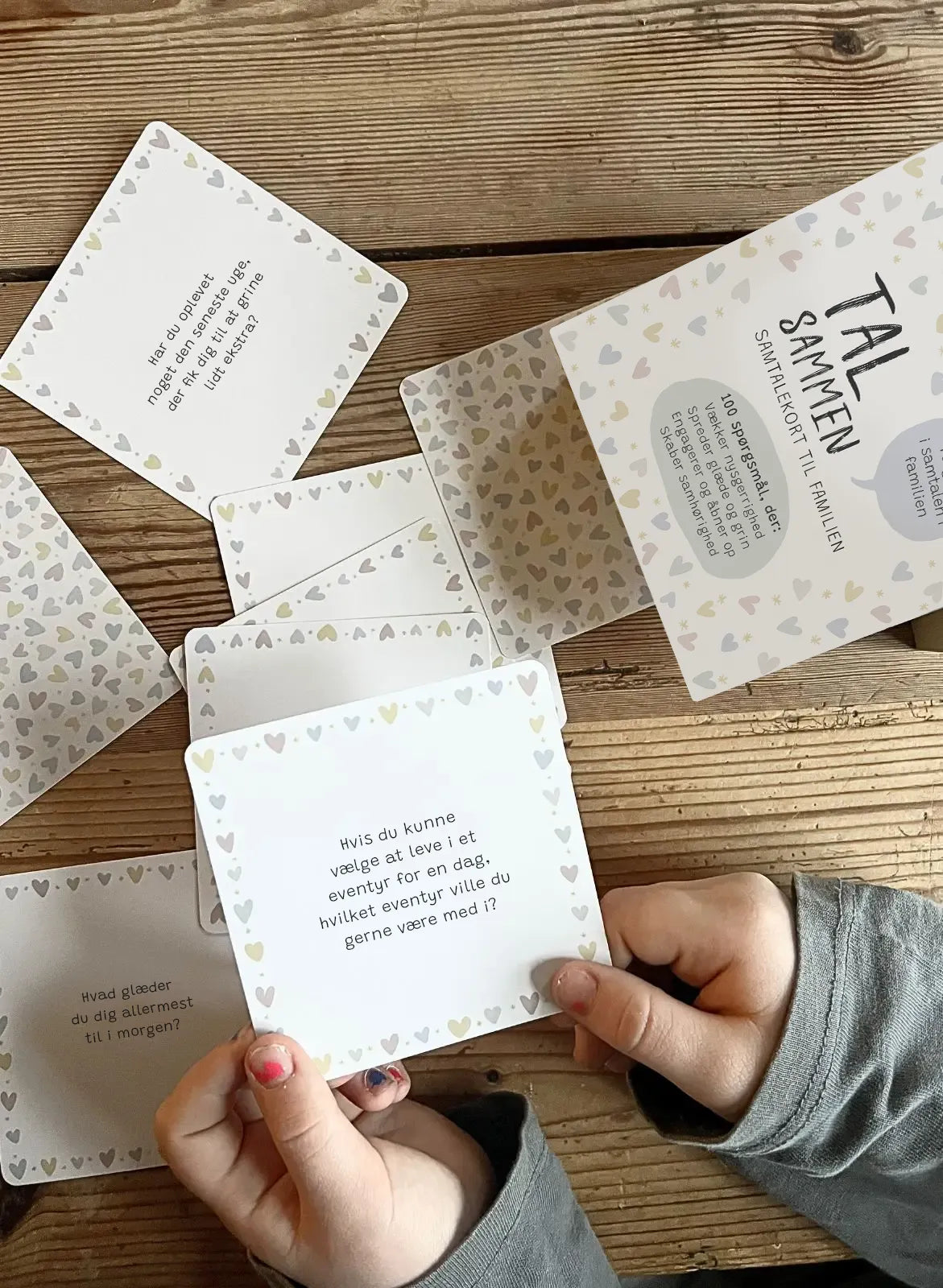 Samtalekortene gør det nemt at finde tilbage til de meningsfulde samtaler. 100 spørgsmål, der vækker nysgerrighed, latter og nærhed – uden at det føles kunstigt eller svært.