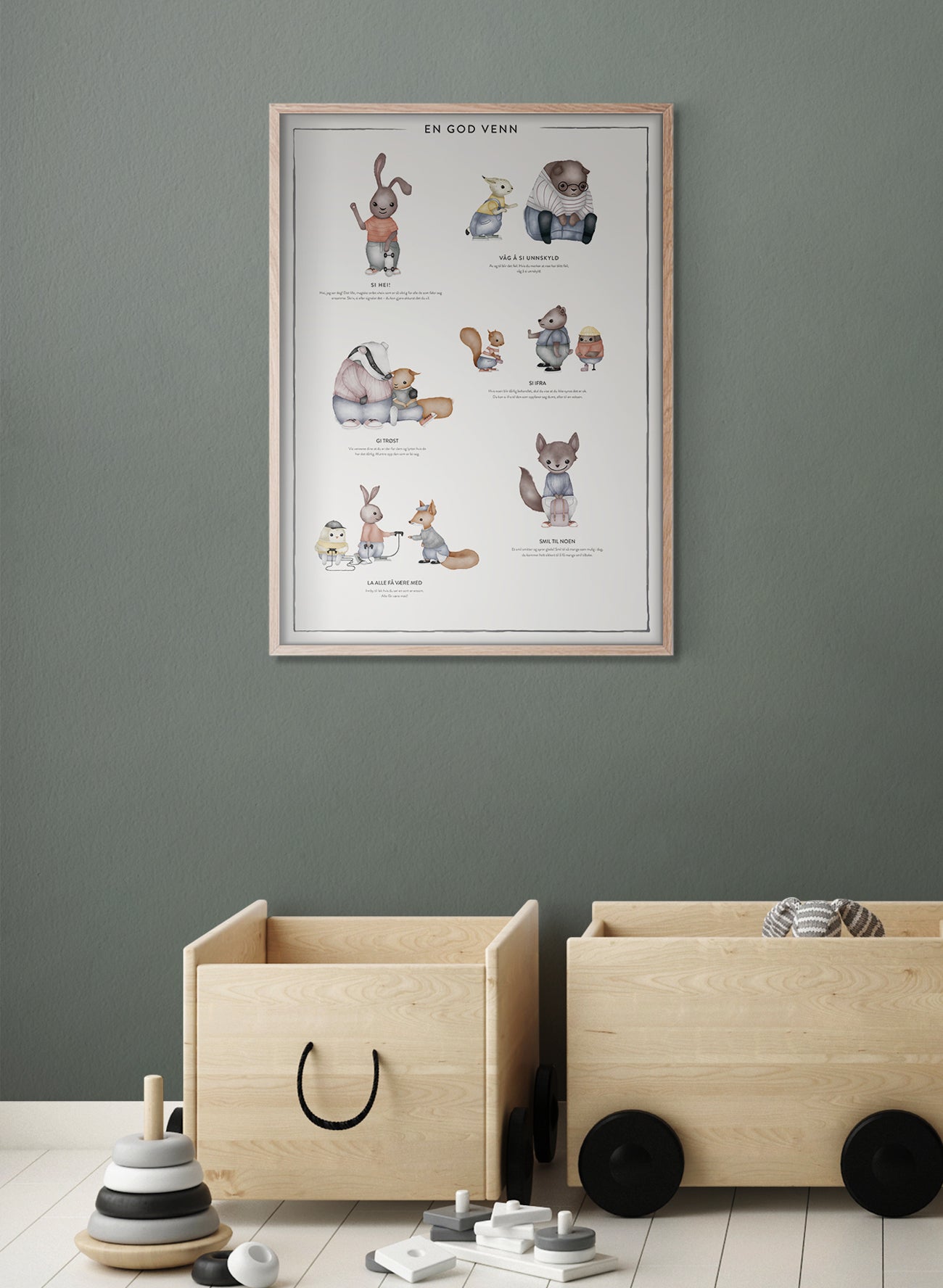 Nettopp derfor har vi laget tavlen EN GOD VENN – en tavle som viser og minner barna på hvor enkelt og viktig det er å være en god venn. Mot andre – og mot seg selv.