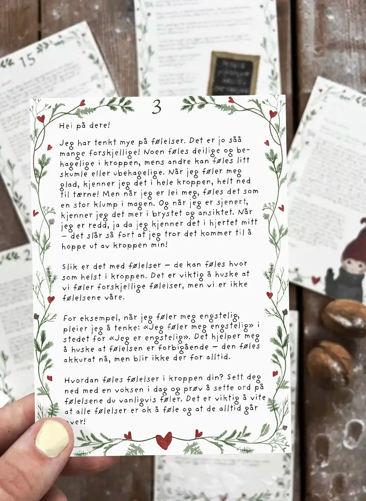 Nissen havner i situasjoner og kjenner på følelser barna lett kan kjenne seg igjen i. Hver dag, fra 1. til 24. desember, legger Nissen igjen et nytt brev. Her starter de viktige samtalene som lar barna vokse og blomstre. En nisse som gjør en forskjell – ett brev om gangen ✨
