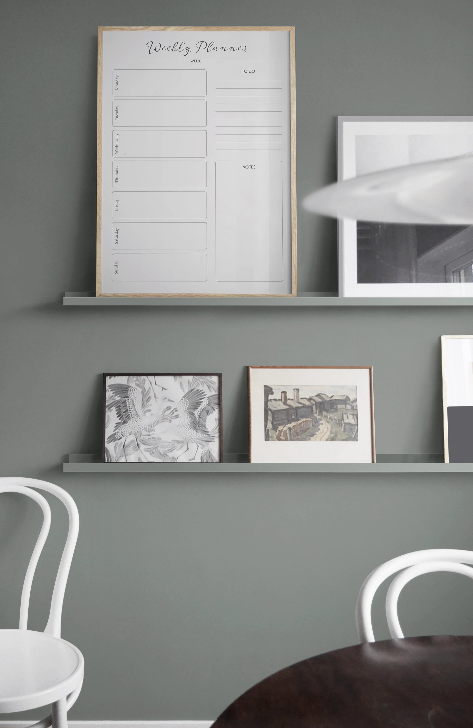 Our weekly planner is designed to make everyday life a little calmer – and much clearer. With soft grey typography on a white background, it’s a clean, minimalist board that blends seamlessly into your home while helping you keep track of the week.